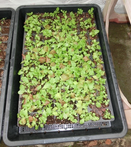 収穫は12月と予想している。 最初に播種した小松菜の収穫が始まった。 -