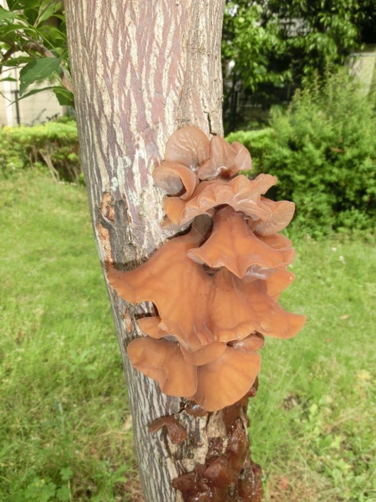 登山靴慣らしのためのトレーニングに出かけた。 天文台通りの淵に傷んだエゴノキがあり、そこに得体のしれぬものが付いているのに気が付き調べてみると「きくらげ」であった。 大変珍しく、生のきくらげは初めて見た思いがする。 -